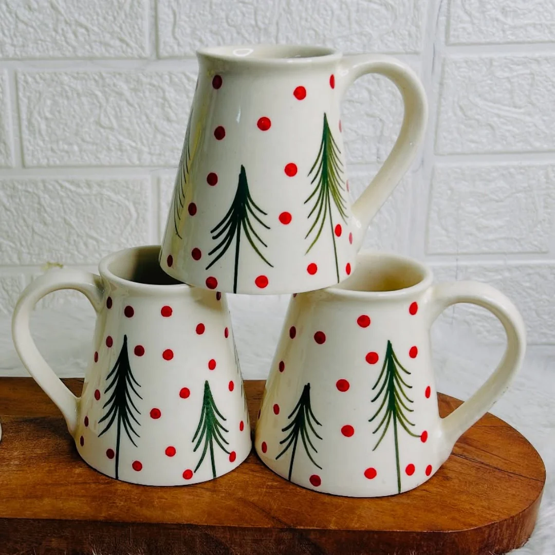 Transform your coffee moments with the Christmas Tree Cup, a perfect harmony of timeless elegance and vibrant artistry. This stunning set, showcasing a pristine off white base accented with red and green floral motifs, is designed for those who cherish the fusion of classic tradition and modern aesthetics.