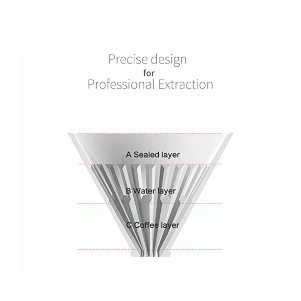 Time More Dripper is designed with a concave principle, the lower area of the dripper, instead of slowing down the brew actually increases, making the water flow more smoothly and the extraction more uniform.