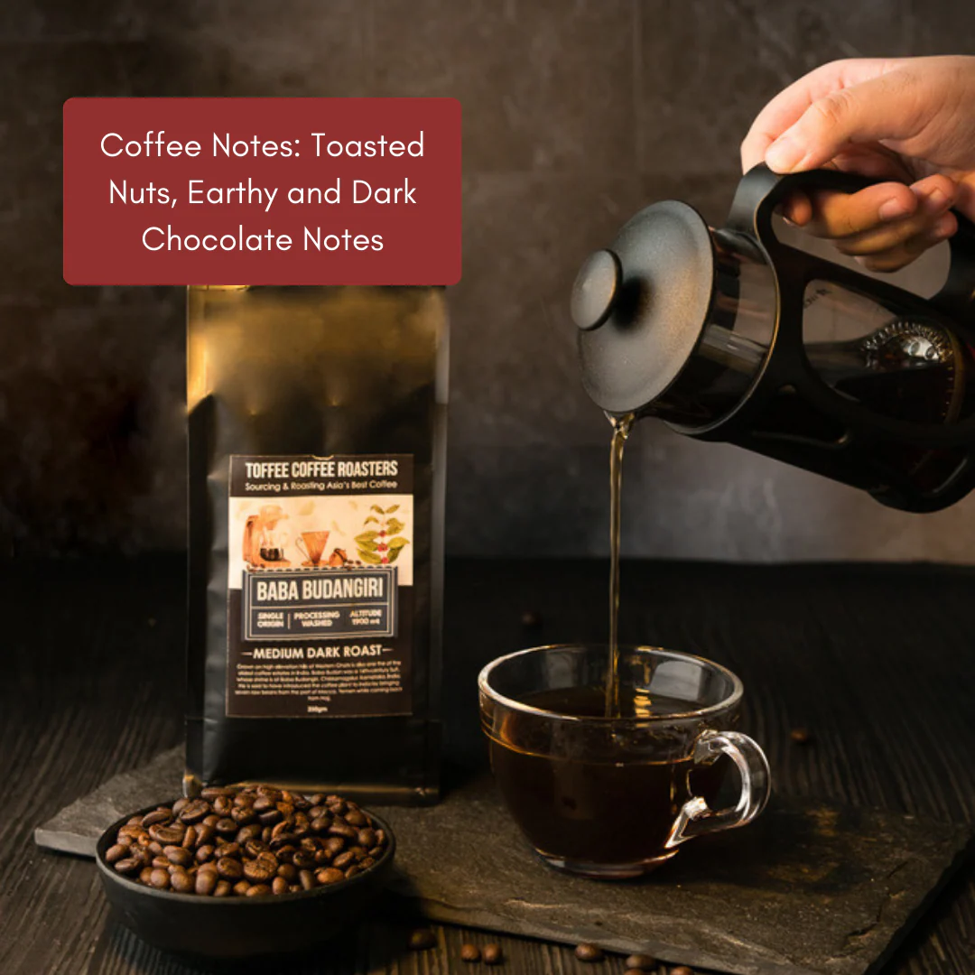 - Baba Budangiri Coffee (Medium Dark Roast): Grown on high elevation hills of Western Ghats is also one the of the oldest coffee estates in India. Baba Budan was a 16th-century Sufi, whose shrine is at Baba Budangiri, Chikkamagalur, Karnataka, India.